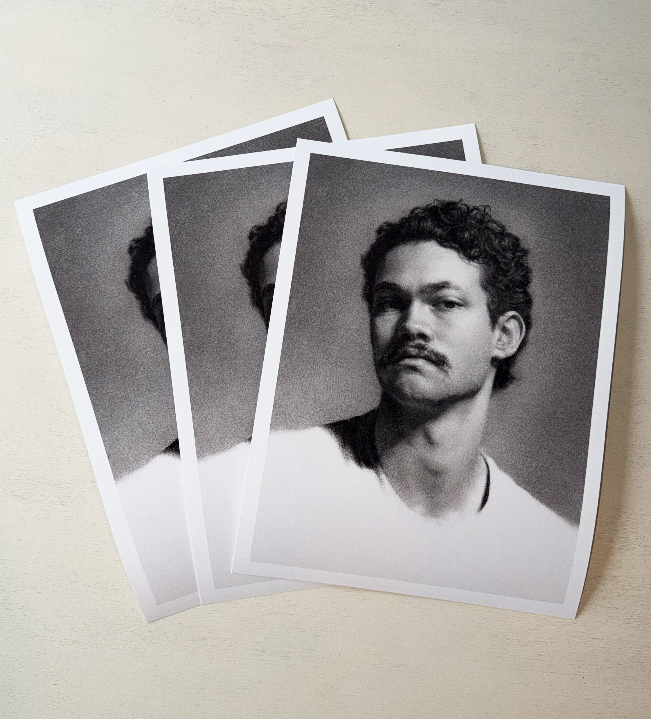 Size is 1:1 with the original charcoal drawing. Print measures 12x9 inches / Paper 15x12 inches.